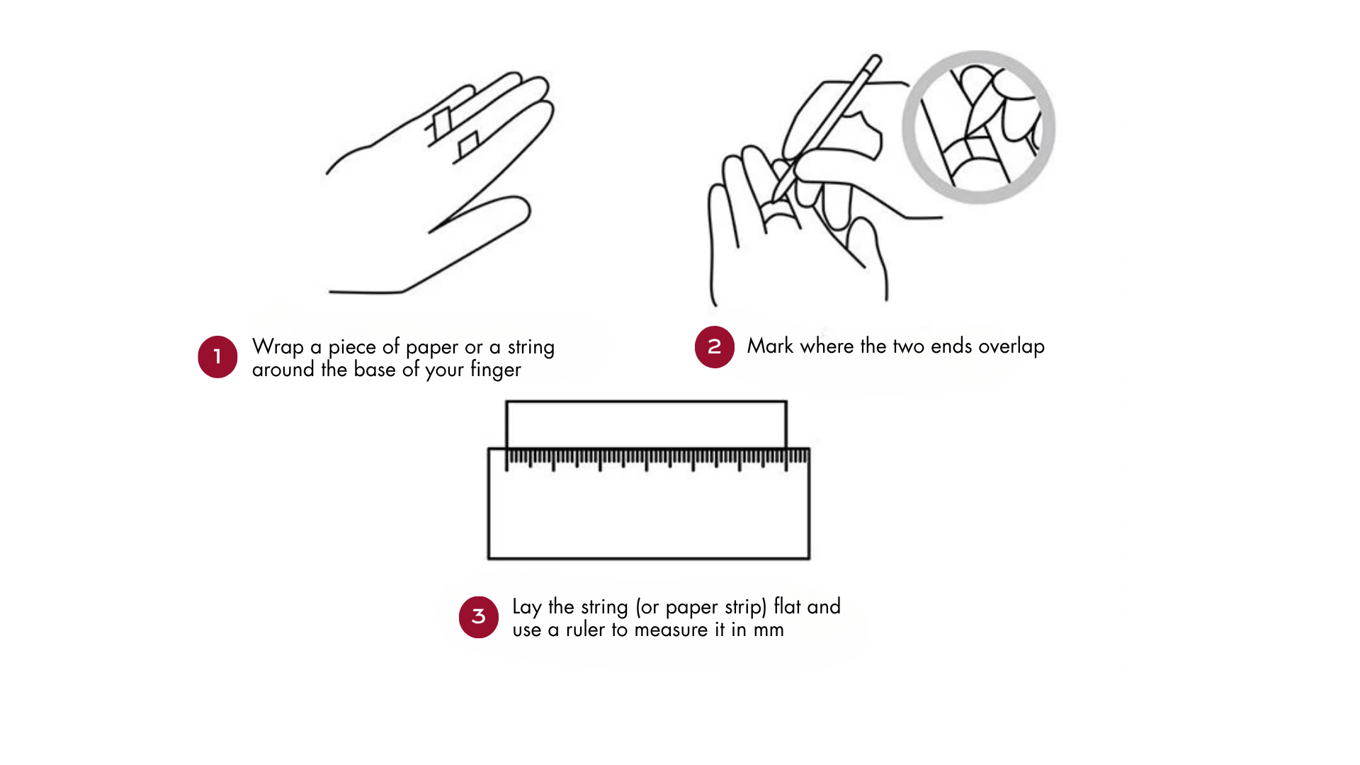 Wrap a piece of string or paper around the base of your finger so it fits snugly but not too tight.